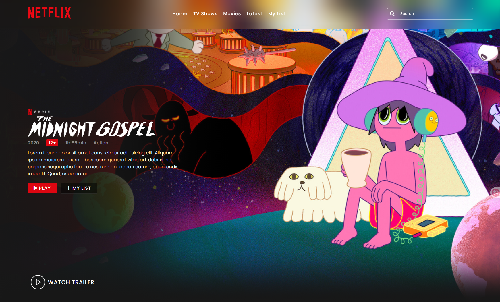 This clone allows users to explore movie and series pages, view detailed information, and watch trailers directly within the site — replicating the immersive Netflix experience.